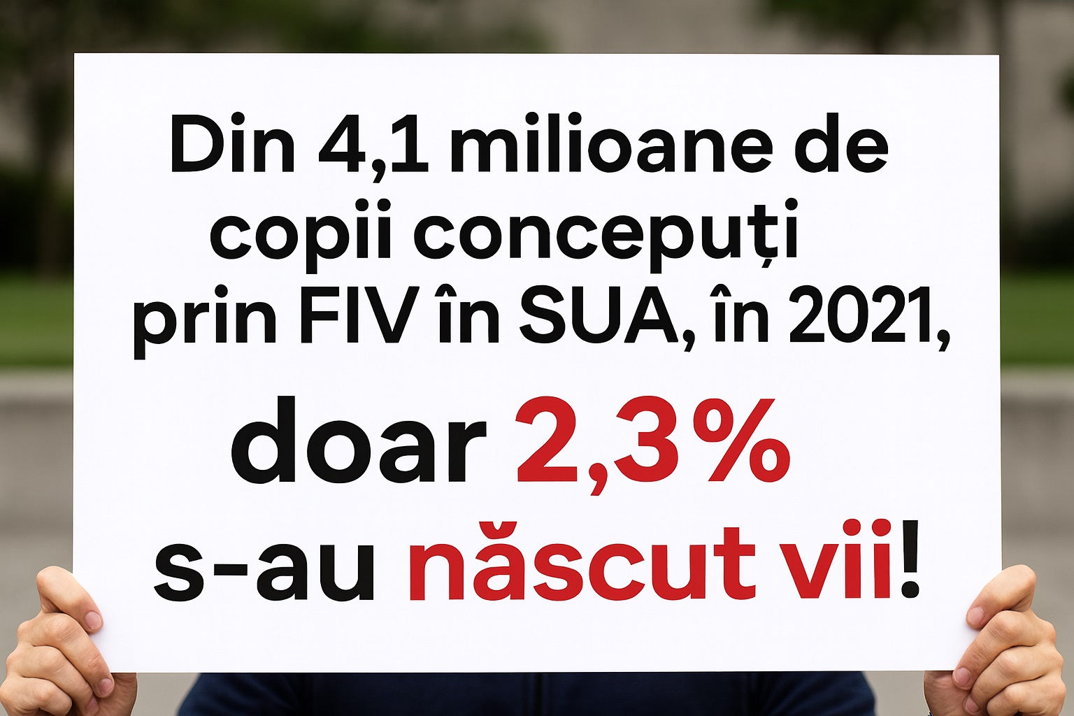 O estimare realizată pe baza raportului CDC din SUA despre situația FIV în anul 2021 oferă un adevăr șocant pentru cei care cred că rata de succes a FIV este de 30–50%. Rata reală de copii născuți vii din totalul de copii creați prin FIV a fost doar de 2,3%.
